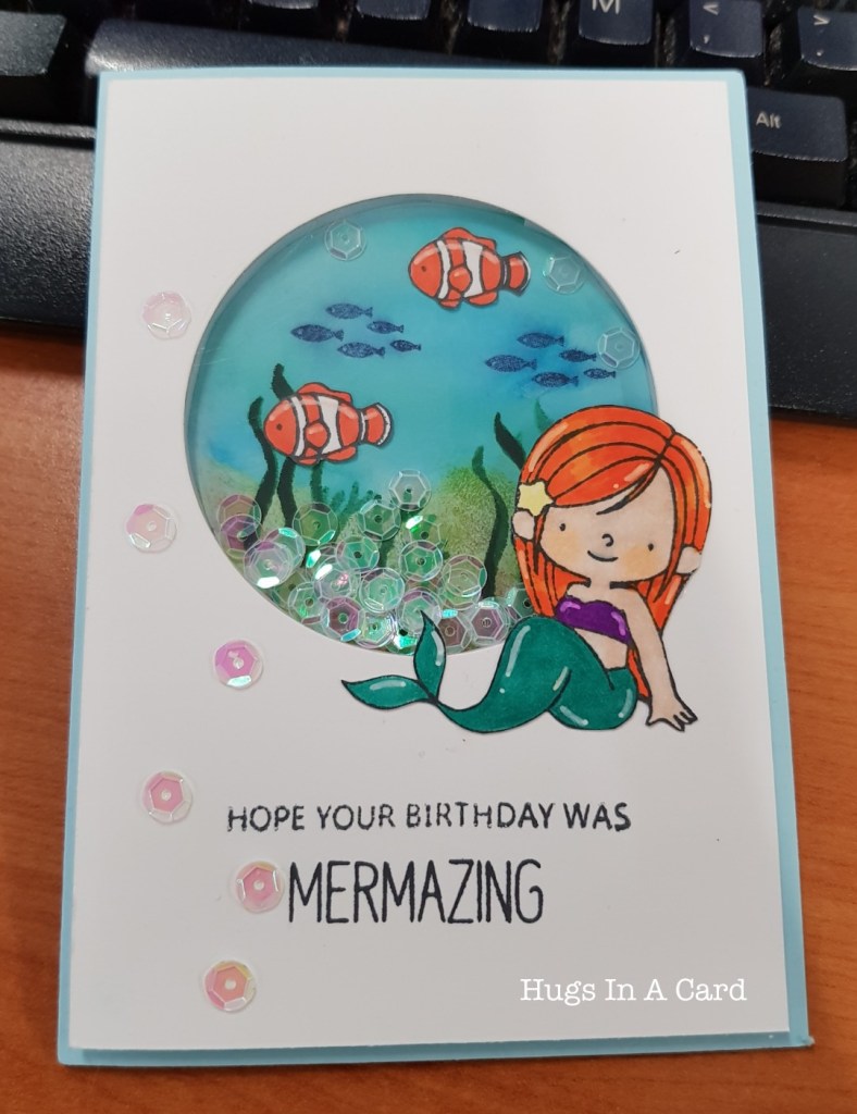 If I were to recreate this card though, I think I’ll use a white backing paper instead of blue then just create the ocean color using ink pads. Then I’ll color the mermaid using a lighter shade of green probably. I kind of liked the effect of the white chalk pen though, it made a difference on my otherwise mediocre coloring. I am not very good at it hehehe.