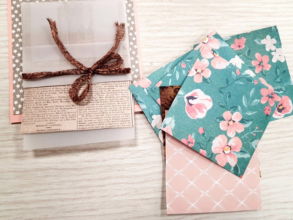 On the opposite side was a pocket for 3×3 notes where everyone could write a personal message. I used a vellum paper for the envelope and tied a bow where I could tuck in the envelope cover.