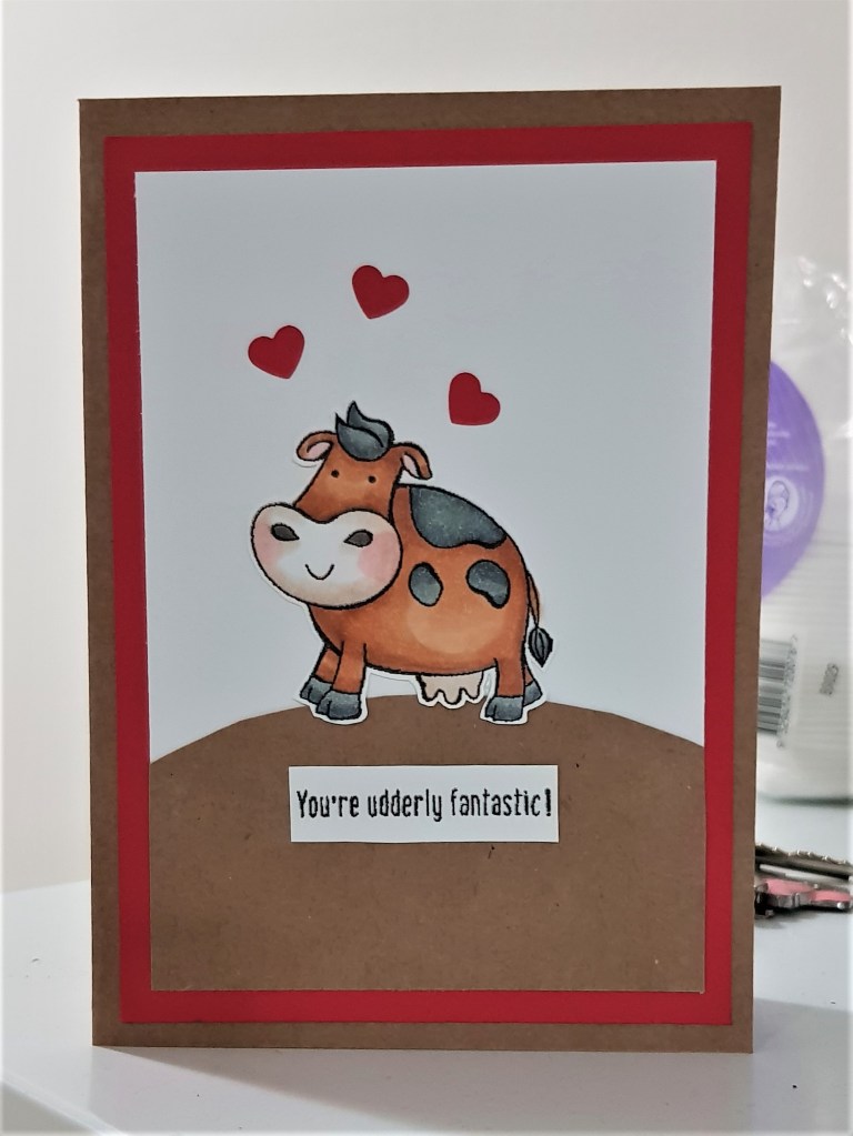These designs are very minimalist. I only used card stocks and black ink for stamping and a few colors of alcohol markers. But if you like fun and quirky cards, you will definitely fall in love with this stamp set from the 2019-2020 catalogue of Stampin’ Up! It’s got 3 very cute cow images and versatile sentiments.