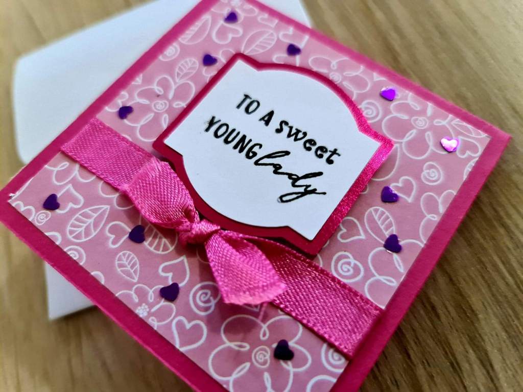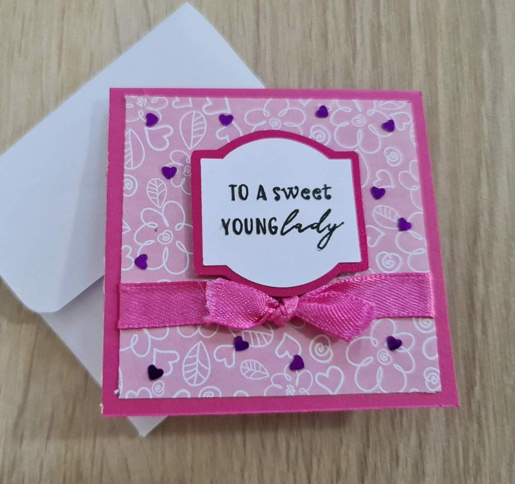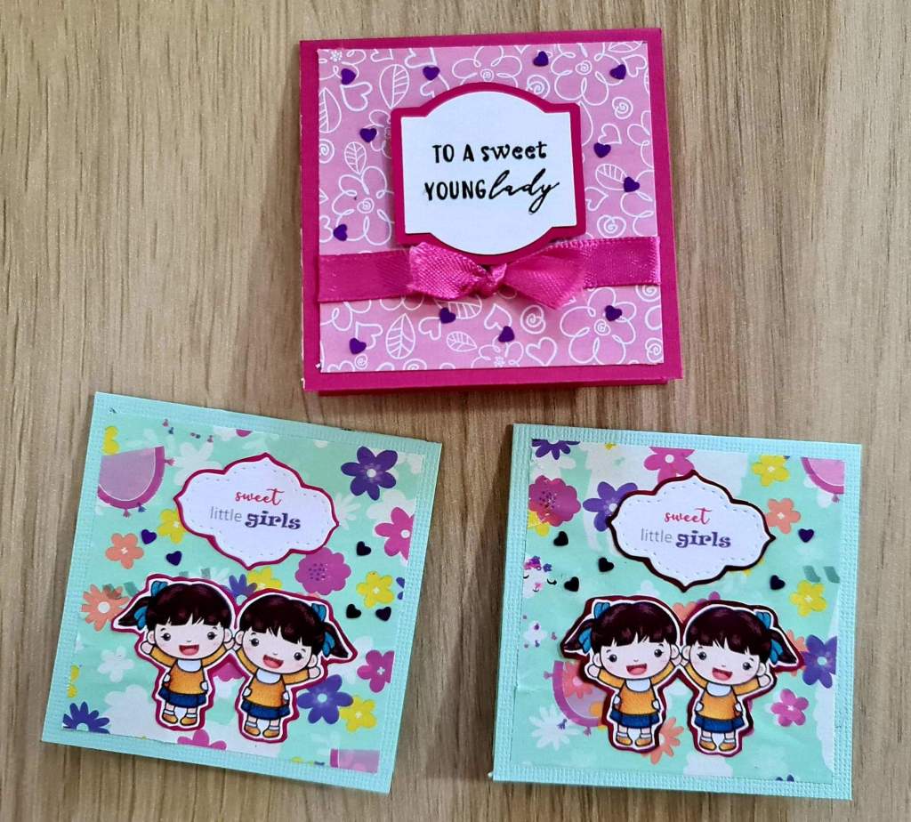The pink one’s for my daughter, Daisy’s, childhood friend. She turned 11 this year and I was surprised to see how much she has grown into a beautiful young lady. The sentiment, which was printed on a white cardstock, was definitely befitting.