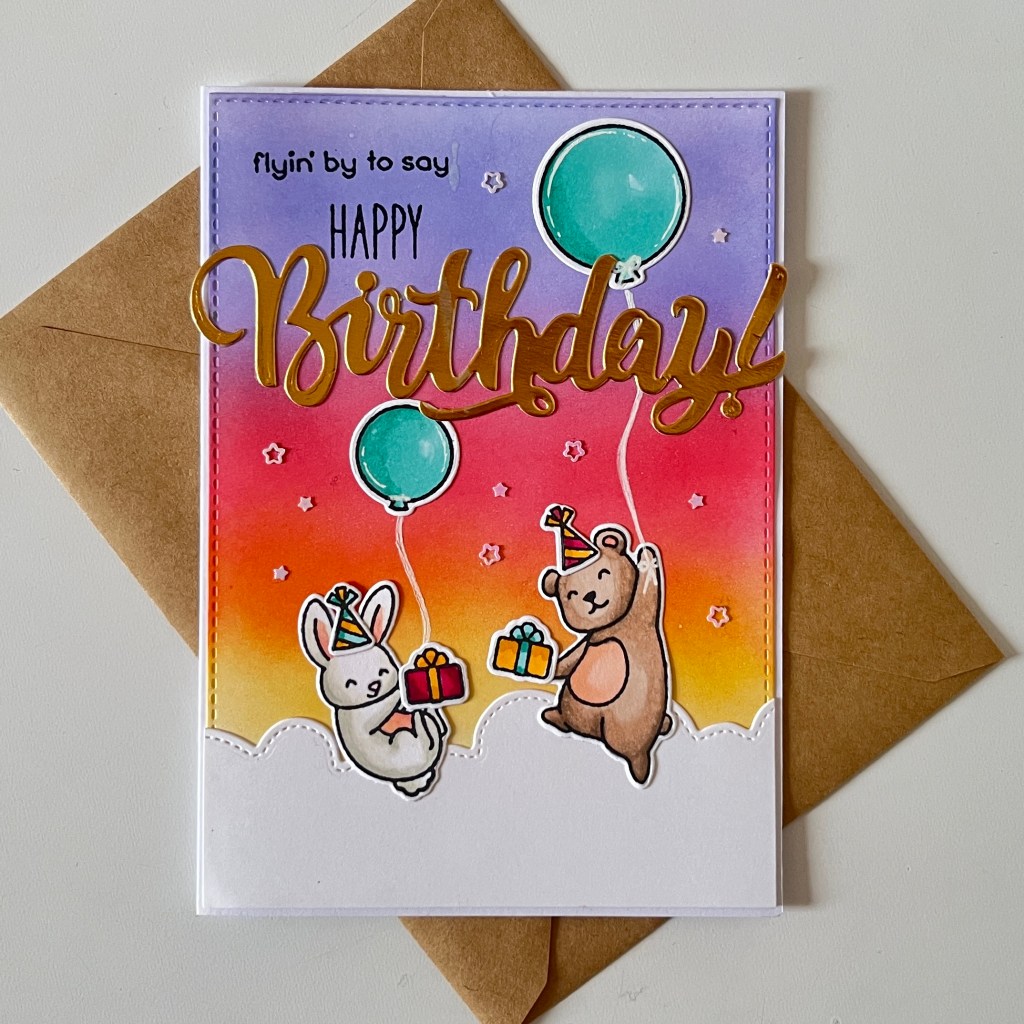 The stamped images I used were from Really High Five Lawn Fawn Stamp and Die set while the big word birthday die cut was from Scrap Dragon. It was actually Happy Birthday but I only used the word birthday and cut it out from gold cardstock.