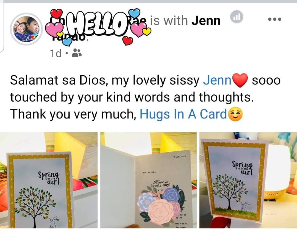 Making one less person lonely – that is the utmost reason why I called my mission “Hugs in a Card.” I truly enjoyed making cards but it’s the ability to touch hearts and make someone smile through my happy mail – that is what made cardmaking a worthwhile passion for me.